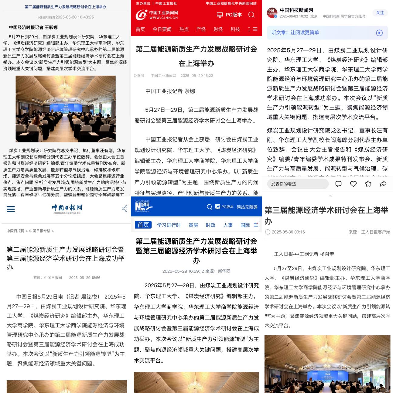 作为能源经济领域最具影响力的学术盛会之一,本次会议获得了行业的广泛关注和深度报道。新华网、人民网、中国日报网、中国科技新闻网、中国经济新闻网、中国工业新闻网、国家煤炭工业网、中国煤炭网、中工网、《中国矿业报》等 10 余家国家级权威媒体及主流平台对大会进行了全方位、多角度的深入报道。据统计,相关新闻累计点击量突破两百万次,创历届新高,充分展现了大会在能源经济领域的学术引领地位和社会影响力。